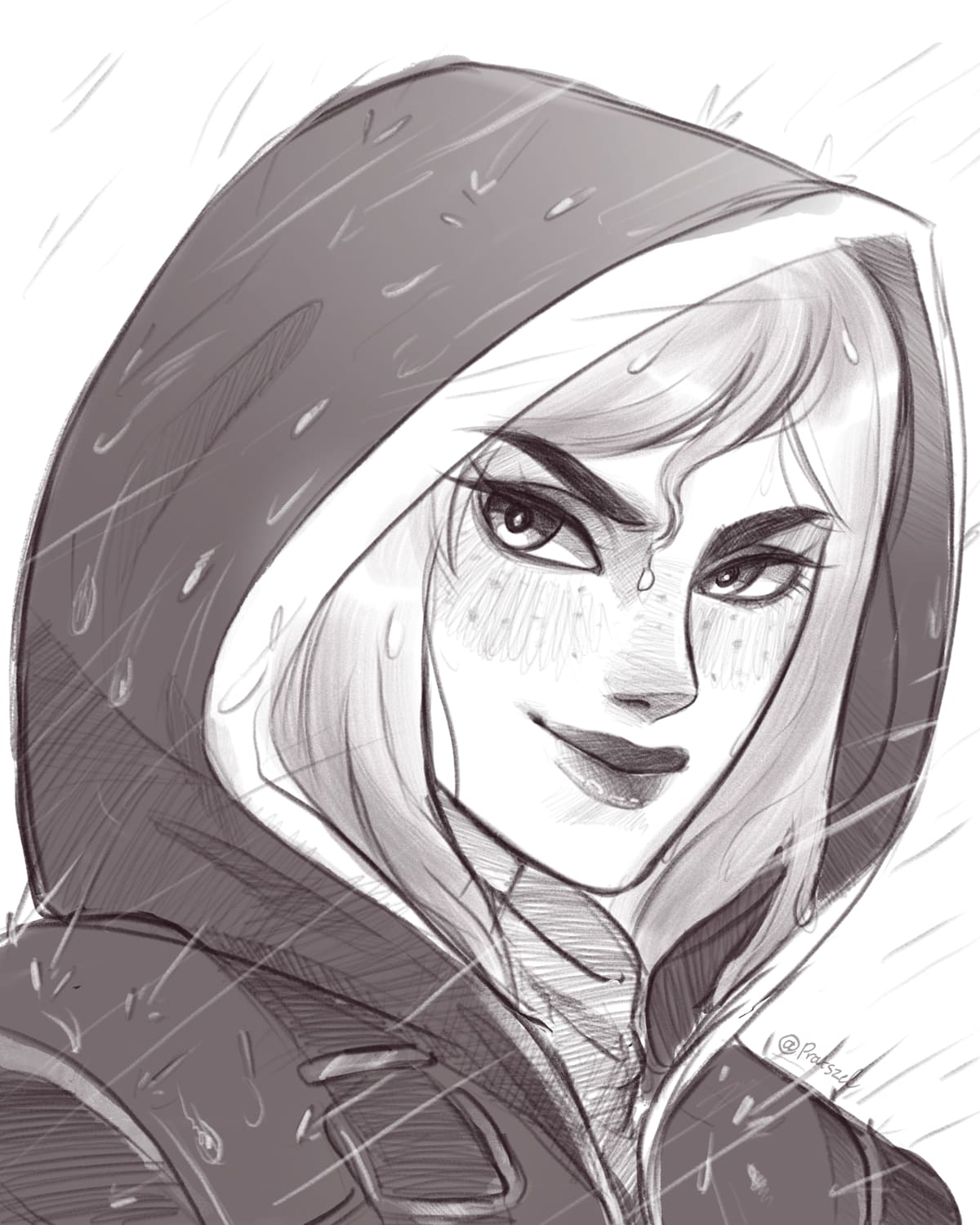 “The fact the Commander hasn’t thrown your ass off the wall yet is a miracle,” said Freya, raising her voice above the downpour. A pair of green eyes and a wicked smile peeked out from beneath her hood.